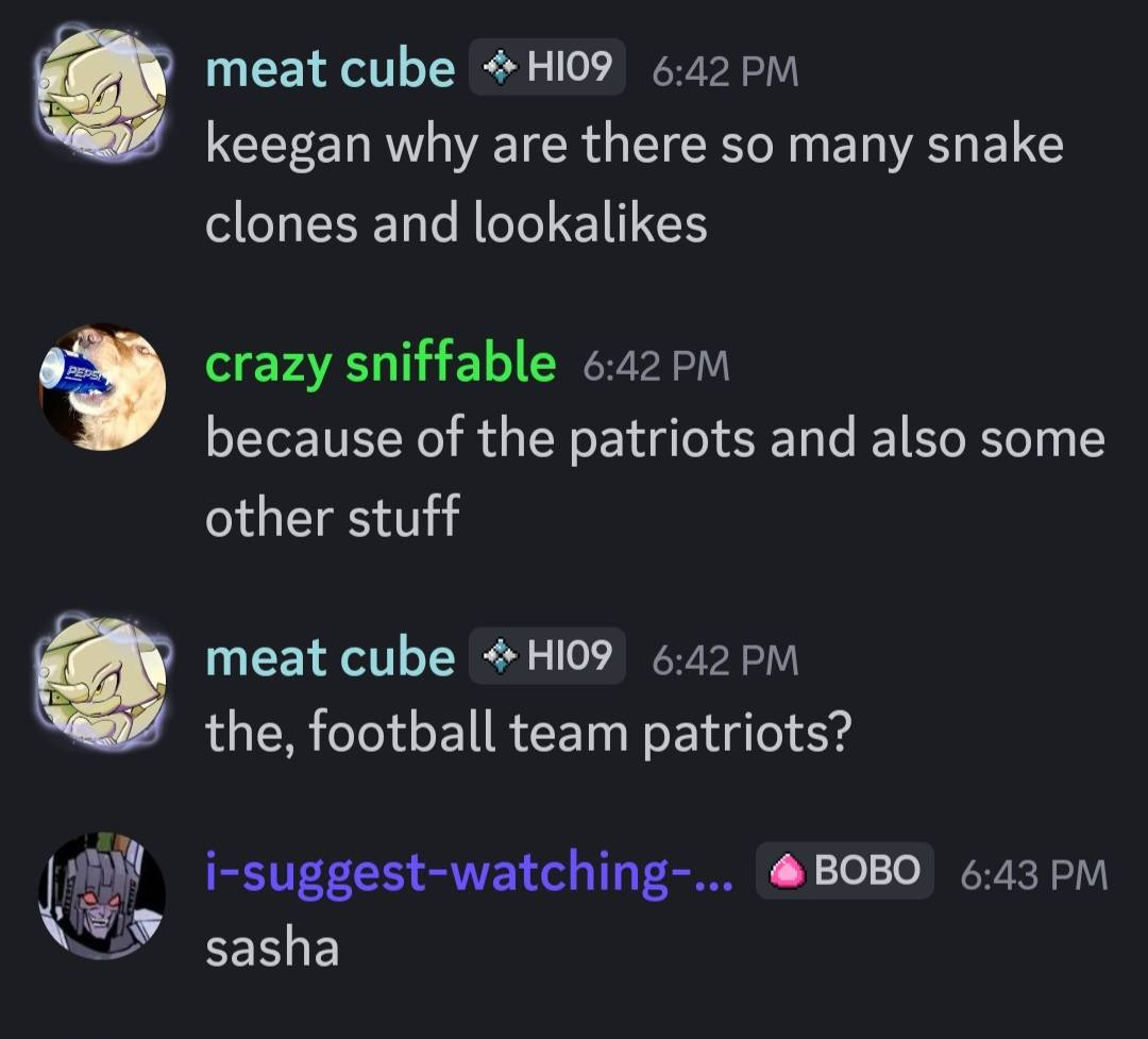 wow that sounds really lofty for a video game series with that many piss jokes, huh? unfortunately it was extremely influential on me and changed my life about as much as a singular piece of lowbrow art possibly can. I first played Metal Gear Solid (1998, playstation) on June 18th, 2021. I can't remember what or who prompted me to pick it up, it might've just been a list of "best playstation games" on some clickbait website while I was trying to play around with an emulator. at the time I was an incredibly stereotypical 14-year-old boy and was initially hooked by the ephemera of it all. the characters all spoke in cool one-liners, the guns and tanks and helicopters were cool, and sneaking around amidst the sounds of shadow moses reminded me of movies I liked (I was super into Escape from New York at the time, as was hideo kojima for his entire early career. at least I assume based on everything, and I've played policenauts and snatcher so you know I'm serious about this). I beat the game in a few days and by the end I was completely blown away by how captivating the storytelling was. the characters are so captivating and have such incredible growth over the course of a roughly 10 hour long story. overall it's so thoughtful and has such an optimisitic view of the human spirit and our ability to determine our own paths.